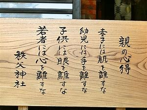 赤子には肌を離すな 幼児には手を離すな 子供には眼を離すな 若者には心を離すな 短い言葉で子供との距離感がとても分かりやすく表現してあります。
